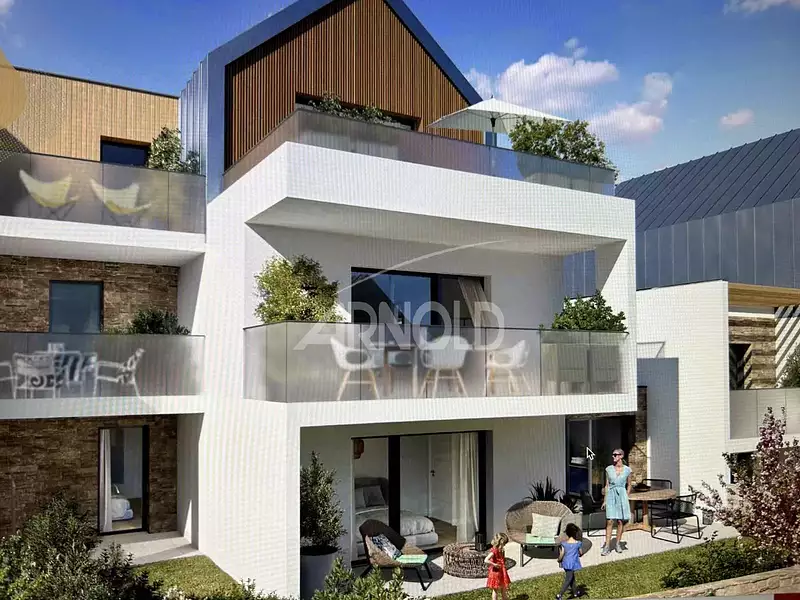 Réalisation de standing, cet appartement se compose d'une entrée, d'une belle pièce de vie, séjour, salon, cuisine équipée et aménagée en connexion avec la terrasse et le jardin aménagé exposé Ouest. Deux chambres, une salle de bain contemporaine. Une place de parking extérieure, un vidéophone dans ce logement complète ce bien. Proche des commerces, écoles, et transports. Prix à la charge du vendeur.