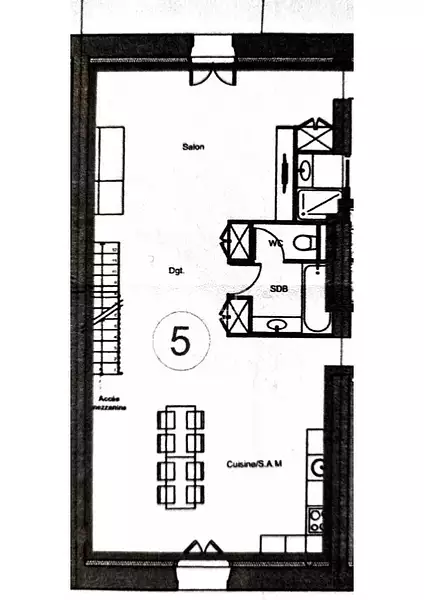 de 60 m2, lot 5 d'une petite copropriété de 5 lots, à rénover, plan à disposition suggérant une très grande pièce de vie, deux chambres, hall d'entrée, une sdb wc et une salle d'eau supplémentaire. Beaucoup de charme, sol en terre cuite ancienne, murs en pierres, grande hauteur sous plafond. Mezzanine possible.