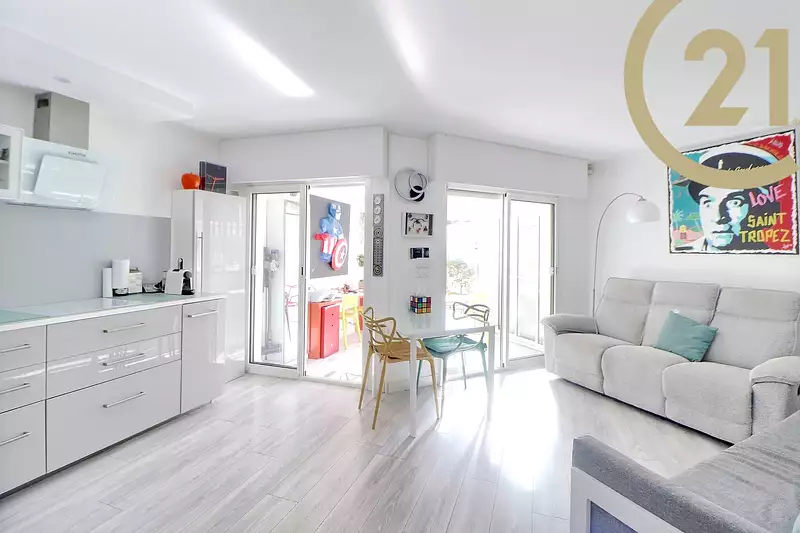 VENTE - SAINT-RAPHAËL - BOULOURIS - Dans une résidence sécurisée avec piscine et à quelques pas de la plage de la Péguière, venez découvrir ce bel appartement traversant 3 pièces de 60m2 (48m2 carrez) composé d'un séjour-cuisine aménagée et équipée donnant sur une loggia faisant office de salle à manger plein SUD avec jardinet, d'une chambre avec salle d'eau, d'une chambre avec placard donnant sur une deuxième loggia et d'un jardinet exposé NORD, d'une salle d'eau et d'un WC indépendant.