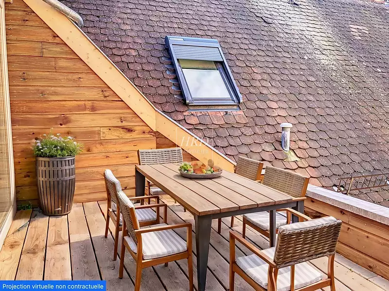 Trés lumineux, et avec ses poutres apparentes, il se compose d'une vaste entrée permettant un coin bureau, d'une cuisine équipée ouverte sur le séjour, donnant accès à la terrasse hollandaise de 6m2 avec vue sur la cour intérieure, de deux chambres dont une sa salle de douche, d'une salle de bains, des toilettes séparés.