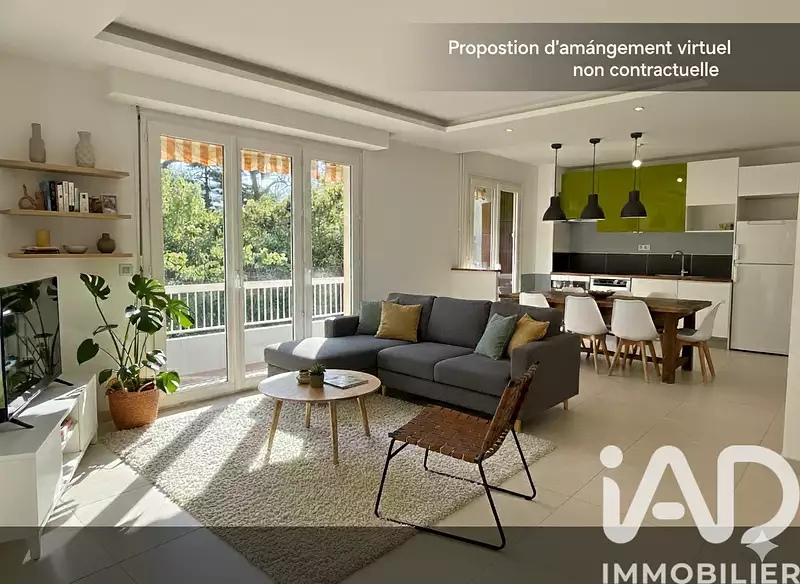 iad France - Vanessa GENOD vous propose: AIX EST (avenue de Beauregard) - T3 de 62m2 rénové - 2 chambres - CALME ET LUMINEUX - AUCUN VIS-A-VIS - SEJOUR DE 27m2 - Résidence fermée - PARKING PRIVATIF - CAVE.
