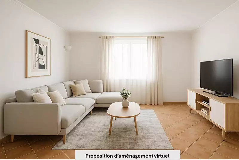 Agencé en étoile, il offre une circulation fluide et se compose d'une entrée, d'un séjour lumineux, d'une cuisine dinatoire, de deux chambres, d'une salle d'eau, d'un WC séparé, ainsi qu'un cellier avec espace buanderie.