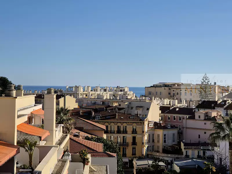 En exclusivité ce grand 2 pièces de 60 m2 ( possible de changer en 3 pièces), au 6ème étage d 'un immeuble centre ville de Menton,vue sur les toits de Menton, mont agel, campanin, aperçu mer,