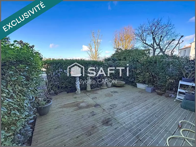 L’agence SAFTI vous présente en exclusivité ce bel appartement de 61 m², composé d’une pièce à vivre, d’une cuisine séparée, de deux chambres ainsi que d’une salle de bain équipée d’une baignoire. Il est idéalement situé dans une rue très calme au sein d’une petite copropriété familiale. Côté rue, l’appartement se trouve au premier étage (sans ascenseur) et dispose d’une chambre avec balcon. De l’autre côté, il est de plain-pied côté jardin, exposé plein ouest. La pièce à vivre s’ouvre directement sur une grande terrasse de 25 m², ensoleillée et offrant un véritable prolongement extérieur très agréable. L’ensemble du logement est lumineux et des travaux de rénovation sont à prévoir, permettant de le personnaliser selon vos envies. La résidence est sécurisée et offre un parking, un local poussette et vélo ainsi qu’une cave apportant un espace de rangement supplémentaire.