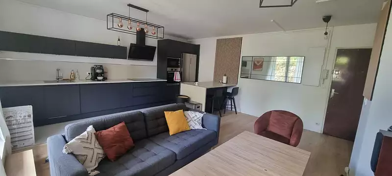 d' une pièce de vie de 30m² avec cuisine aménagée et équipée, une salle d'eau, WC séparés, de 2 chambres avec placards dont une de 14m².