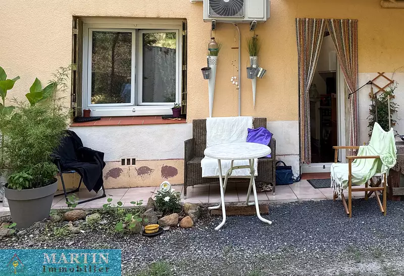 Amélie-les-Bains : beau appartement rénové de 3 pièces traversant, situé au 1er étage d’une copropriété de 24 logements. Il se compose d’un séjour lumineux avec accès à un balcon, deux chambres, une cuisine donnant sur un jardin commun, une salle d’eau et toilettes indépendantes. En rez-de-chaussée, vous disposez d’un garage d’environ 17 m2 ainsi que d’une cave. L’appartement est équipé d’une climatisation réversible, de double vitrage et de volets roulants. Belle vue.