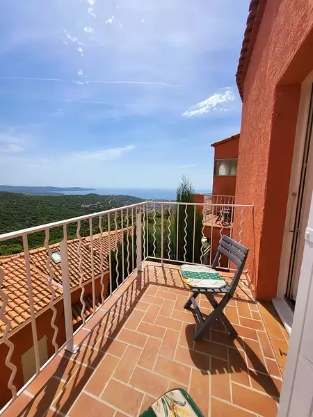 Dans résidence avec piscines, sur les hauteurs de Cavalaire sur mer, au calme absolu, en dernier étage, appartement de type T2 de 62 m2 habitable, 45.28 en loi carrez comprenant : un grand séjour de 25 m2 donnant sur 2 balcons, coin cuisine équipée, 1 chambre, salle d'eau, wc indépendant, une mezzanine de 16 m2 pouvant accueillir plusieurs couchages, vue panoramique mer et verdures, ensoleillé, accès aux 2 piscines, parking privatif, idéal pour votre résidence secondaire !