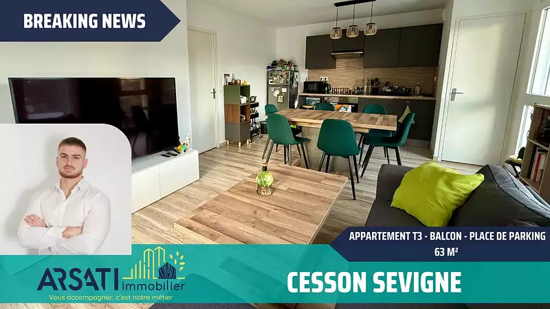 NOUVEAUTÉ sur le marché de CESSON-SEVIGNE (RENNES MÉTROPOLE) chez ARSATI immobilier - APPARTEMENT de 2014 - 63m² HABITABLE - 2 CHAMBRES
