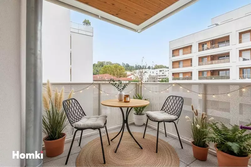 Terrasse & Verdure : La terrasse privative, véritable prolongement du salon, devient votre refuge pour profiter pleinement des beaux jours. Elle bénéficie d'une vue dégagée sur la verdure du parc paysager, en toute tranquillité.