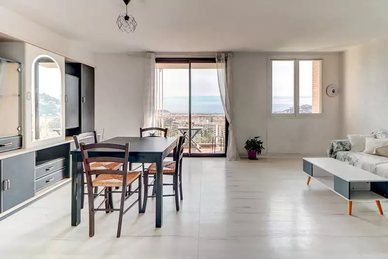 - Un séjour / salle à manger spacieux ouvrant sur un balcon avec la vue mer