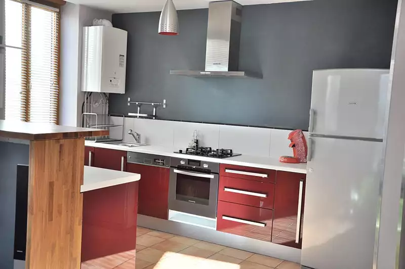 Une cuisine aménagée ouverte sur un séjour baigné de lumière, deux chambres d'environ 12m2 et une salle de bains avec toilette.
