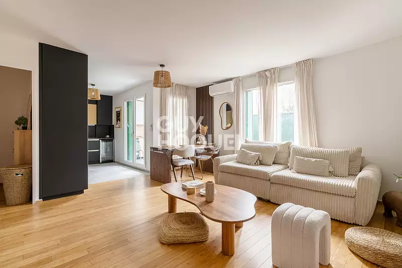 EXCLUSIVITE - Toulouse - Croix de Pierre / T3 de 63 m² avec jardin privatif Dans le très recherché quartier de la Croix de Pierre, à deux pas du tramway, des commerces, des écoles et du futur poumon vert de l'Île du Ramier, découvrez ce magnifique appartement T3 de 62 m², niché dans une petite rue à sens unique, où le calme règne en maître. Situé au sein d'une copropriété intimiste, ce bien traversant Est-Ouest offre une luminosité agréable du matin au soir. Dès l'entrée, la belle pièce de vie séduit par son atmosphère chaleureuse et son agencement moderne. La cuisine ouverte entièrement équipée, pensée avec soin, s'intègre parfaitement et invite à partager des moments conviviaux. L'espace de vie s'ouvre sur un jardin privatif, un véritable coin de détente à l'abri des regards, idéal pour profiter des beaux jours. Le coin nuit, de son côté, se compose de deux chambres donnant sur un second jardin, côté parking, garantissant une tranquillité totale. Une salle d'eau moderne vient compléter l'ensemble. Aucun travaux n'est à prévoir : tout a été conçu pour offrir confort et sérénité au quotidien. L'appartement bénéficie également d'une place de parking privative, un atout précieux dans le quartier. Un bien rare, alliant emplacement privilégié, calme absolu, extérieur et prestations impeccables. Une véritable opportunité pour ceux qui recherchent un cadre de vie paisible tout en restant au coeur de Toulouse. Copropriété de 9 lots (Pas de procédure en cours). Charges annuelles : 1560 euros.