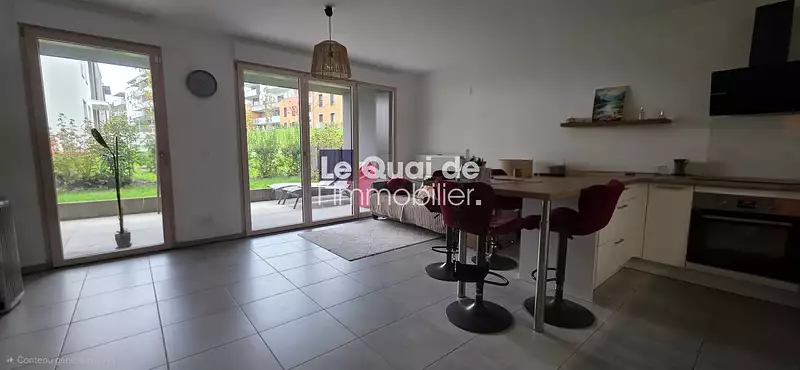 Dans une résidence de 2023 aux prestations haut de gamme, nichée dans un grand espace de verdure avec parc pour enfants et vaste parking collectif, découvrez ce très beau T3 de 63 m² en rez-de-jardin, bénéficiant d'un extérieur d'environ 60 m² (terrasse + jardin).