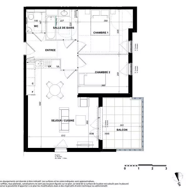 Situé au 2ème étage, ce bel appartement de 63,25 m² environ bénéficie d’un agencement fonctionnel et d’une belle luminosité.
