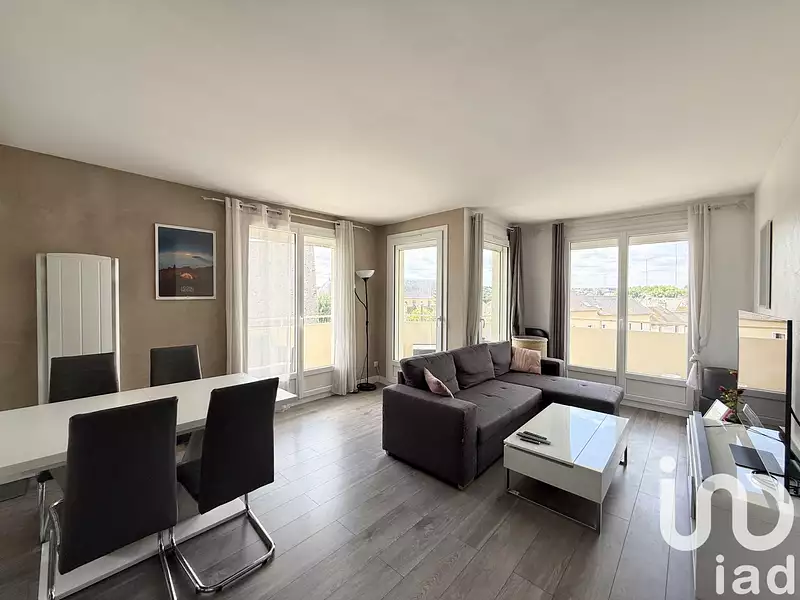 iad France - Christophe Renaudin vous propose: Appartement 3 pièces de 63m2 comprenant : entrée avec rangements, belle pièce de vie lumineuse 34m2 exposé SUD avec un grand balcon, cuisine ouverte aménagée et équipée, 2 chambres, 1 salle de bain et 1 wc séparé.