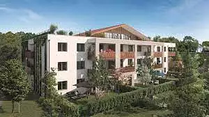 La résidence se compose de 2 bâtiments épousant la pente du terrain. Elle est entourée de beaux jardins arborés et propose des espaces communs propices à la détente et aux rencontres pour les résidents. L'architecture du projet est sobre et contemporaine : couleur blanche contrastée par des parties en béton brut. Certaines façades sont végétalisées. Le traitement des derniers niveaux est un hommage à l'architecture basque avec ces « maisons sur le toit », comme posées ou suspendues sur les bâtiments, en bardage bois et toitures de tuiles à double pans, typiques de l'identité locale. Tous les logements présentent de beaux volumes et bénéficient de prestations de qualité - SUPERI_1765127466