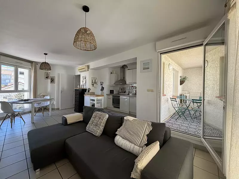 Canet Plage, Appartement coup de coeur, de type T3 traversant exposé E/O dans une petite résidence de 2008, situé à 300 m de la plage, proximité commerces et commodités. Il est composé d'une entrée avec placard de rangement, un salon/séjour très lumineux avec accès terrasse, cuisine ouverte, équipée et aménagée. Le coin nuit se compose de deux chambres chacune avec avec placard, une salle d'eau, un WC indépendant. Double vitrage, volets roulants électriques. Climatisation réversible. Appartement avec beaucoup de charme et très bien agencé en parfait état. Pour plus de renseignements et pour organiser une visite merci de me contacter Bianca RAIA 06.50.29.95.93