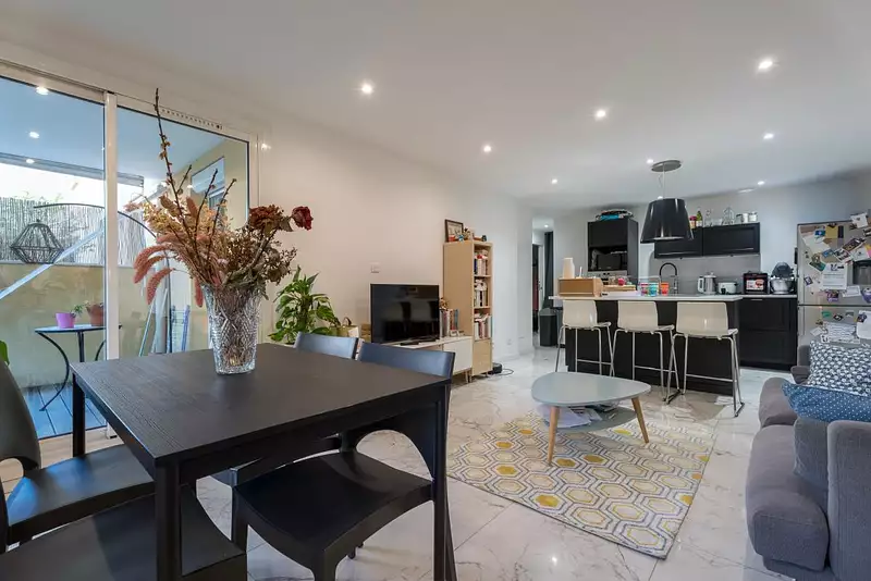 L'appartement s'ouvre sur une pièce de vie lumineuse avec cuisine équipée, donnant accès à un magnifique jardin privatif de 70 m². L'espace nuit comprend deux chambres, une salle d'eau, un coin buanderie ainsi que des WC séparés.