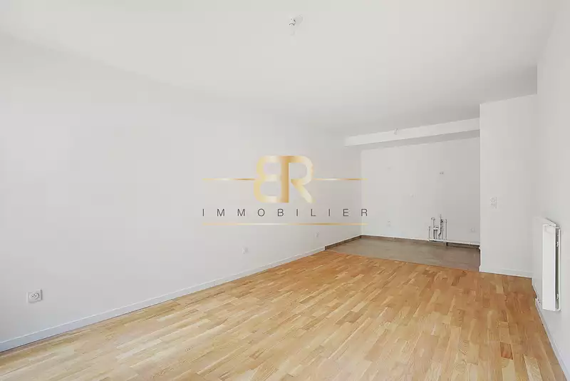 Une cuisine ouverte (non aménagée) donnant sur un séjour lumineux, exposé sud-ouest, grâce à de grandes baies vitrées,
