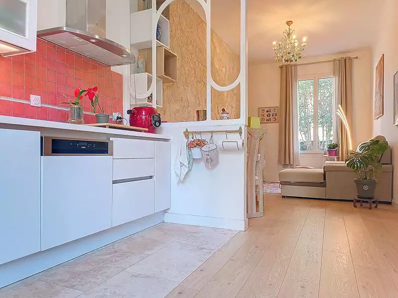 Dans une maison niçoise du début du vingtième siècle, nous proposons à la vente cet appartement au rez-de-jardin, de type trois pièces offrant une très belle hauteur sous plafond et en parfait état.