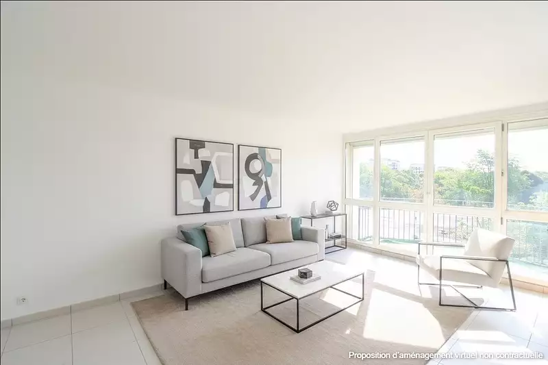 Séjour de 20,75 m² avec accès direct à un balcon de 4,9 m² (vue dégagée, aucun vis-à-vis)