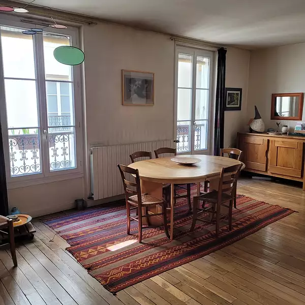 Proche métro Jourdain et Place des Fêtes, bel immeuble pierre de taille, au 2ème étage avec ascenseur, un beau 2 pièces de 63 m² traversant composé d'une entrée, une cuisine équipée, un couloir dégagement avec grand rangement desservant un grand séjour et une chambre sur petit balcon, une salle d'eau/W.C, une cave en sous-sol.