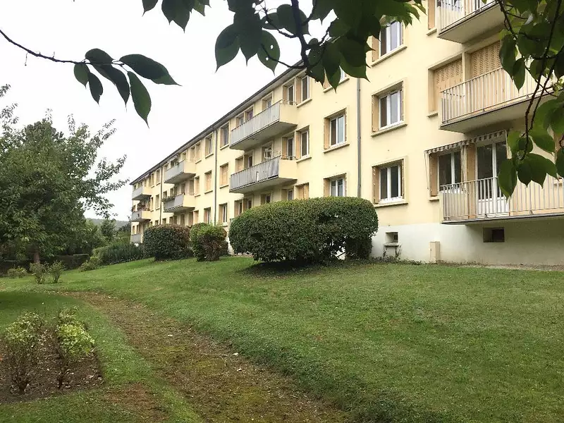 Dans un environnement verdoyant, au 2éme et dernier étage, appartement comprenant : séjour-salon avec balcon, 2 chambres, cuisine, salle de bains. Garage individuel et cave. Chauffage individuel gaz.