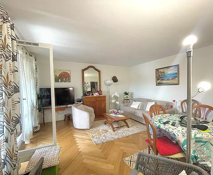 Bel Appartement lumineux d'environ 64 m² , offrant : une entrée, agréable séjour/salon très lumineux et avec loggia aperçu mer et vue à 360°, cuisine ouverte aménagée et équipée, un cellier, un couloir avec des rangements, 2 chambres avec placards, salle d'eau avec WC suspendu. Une cave et une place de parking privative. Belle opportunité à découvrir ! (5.11 % honoraires TTC à la charge de l'acquéreur.) Copropriété de 129 lots - dont 46 lots habitation. (Pas de procédure en cours). Charges annuelles : 3000 euros.