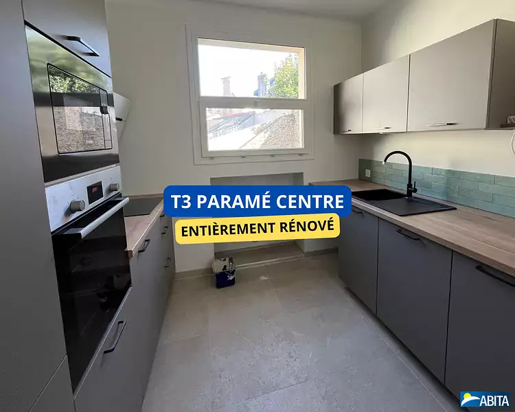PARAME CENTRE - Au 1er étage, un appartement entièrement rénové, comprenant : une entrée avec dégagement, un salon séjour lumineux, une cuisine aménagée et équipée, deux chambres dont une avec dressing, une salle d'eau et un wc. Deux balcons.