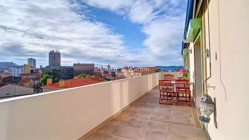 Exclusivité à Saint-Raphaël, bel appartement au dernier étage bénéficiant d'une grande terrasse avec une vue imprenable jusqu'à la mer. Emplacement idéal au centre-ville, le tout à deux pas des plages, commerces, restaurants et transports en commun. Possibilité garage en sus. Copropriété de 22 lots (Pas de procédure en cours). Charges annuelles : 1956 euros.