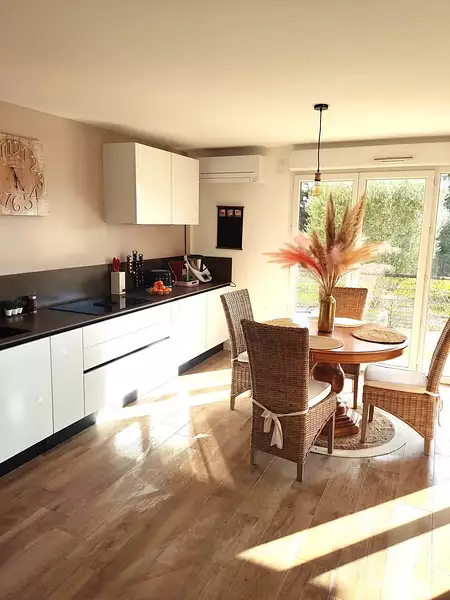 Logement entièrement refait avec de très belles prestations il y a 3 ans seulement: climatisation réversible, cuisine équipée-aménagée avec crédence et plan de travail en pierre, carrelage-parquet moderne dans toutes les pièces, peintures lisses refaites dans toutes les pièces, WC suspendus séparés avec faïence moderne, placards aménagés avec très belles portes modernes dans le couloir et les 2 chambres....