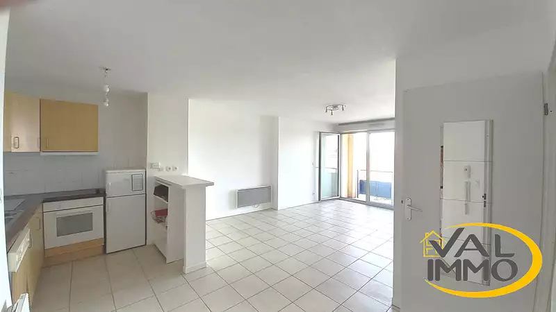 Il propose une entrée avec placard, d'une cuisine ouverte sur un grand séjour avec balcon filant de 8m². Côté nuit vous trouverez deux chambres avec placard, une salle de bain, et toilettes séparées. Les commerces, écoles, services et transport sont accessibles à 2 minutes à pied.