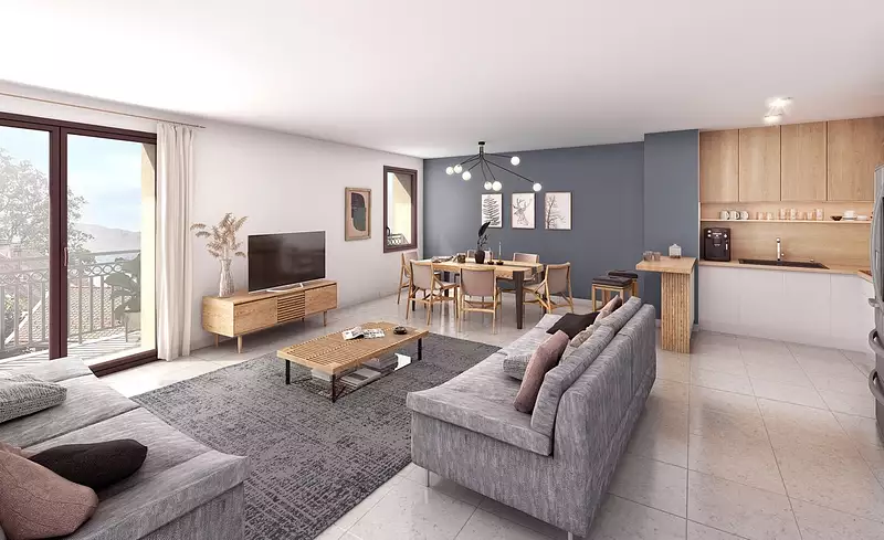 Composé d'un séjour de 25,45 m² donnant sur un balcon de 4,10 m² exposée sud, deux chambres, une salle d'eau et un wc indépendant.