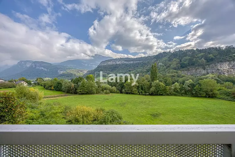 CHAMBERY (73000) - T3 avec jolie terrasse et vue exceptionnelle. En Exclusivité, découvrez ce magnifique appartement de type 3 de 64,60m², situé au 3ème étage avec ascenseur d'une résidence récente, sécurisée et accessible PMR.Vous serez immédiatement séduits par sa vue splendide sur les montagnes, un cadre rare offrant calme, lumière et sérénité.L'appartement se compose d'une entrée avec rangement, d'un vaste séjour avec une cuisine moderne (32,5m²) baigné de lumière grâce à une grande baie vitrée ouvrant sur une belle terrasse en bois, idéale pour profiter de la vue et des beaux jours.La partie nuit offre deux chambres lumineuses, une salle de bains carrelée jusqu'au plafond avec baignoire et meuble vasque, ainsi que des toilettes indépendantes.Un garage sécurisé complète ce T3 aux prestations soignées.Ce bien allie confort, modernité et cadre exceptionnel, un véritable coup de cœur à découvrir sans tarder !Biens soumis au statut de la copropriété comprenant 39 lots principaux.Montant moyen annuel de la quote-part du budget prévisionnel à la charge du vendeur pour les dépenses courantes : 3000 €