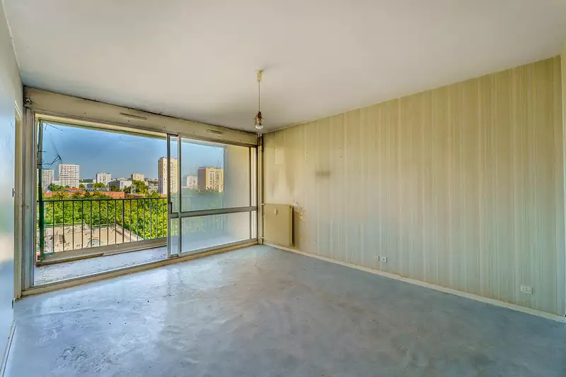 Roussillon Eiffel, au calme, dans résidence avec gardien, appartement 3 pièces à rénover entièrement comprenant entrée avec rangements, séjour sur balcon, cuisine, 2 chambres, salle de bains, wc, cave et parking collectif sécurisé, poss d'acquérir un garage en sus du prix. Cop 75 CA 2463€ chauff et eau inclus