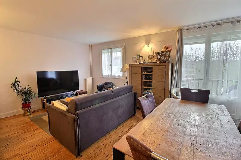 EPERNON centre ville. Appartement de type F3 situé au 3ème étage de la résidence comprenant une entrée, séjour-salle à manger de 26m² avec accès au balcon, cuisine aménagée et équipée, 2 chambres avec dressing, salle d'eau et WC séparé. Aucun travaux à prévoir ! Facilité de stationnement dans la résidence. Cave. Copropriété de 60 lots - dont 32 lots habitation. (Pas de procédure en cours). Charges annuelles : 2351 euros.