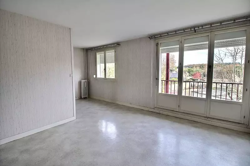 EXCLUSIVITÉ AMANDA (AMEPI). EPERNON, tout à pied, F3 dans une résidence fermé comprenant une entrée, cuisine , séjour-salon avec accès balcon, 2 chambres, SDE et WC séparé. Garage fermée. Travaux de rafraichissement à prévoir. Idéal 1er achat ou investissement locatif! Copropriété de 60 lots - dont 32 lots habitation. (Pas de procédure en cours). Charges annuelles : 2351 euros.