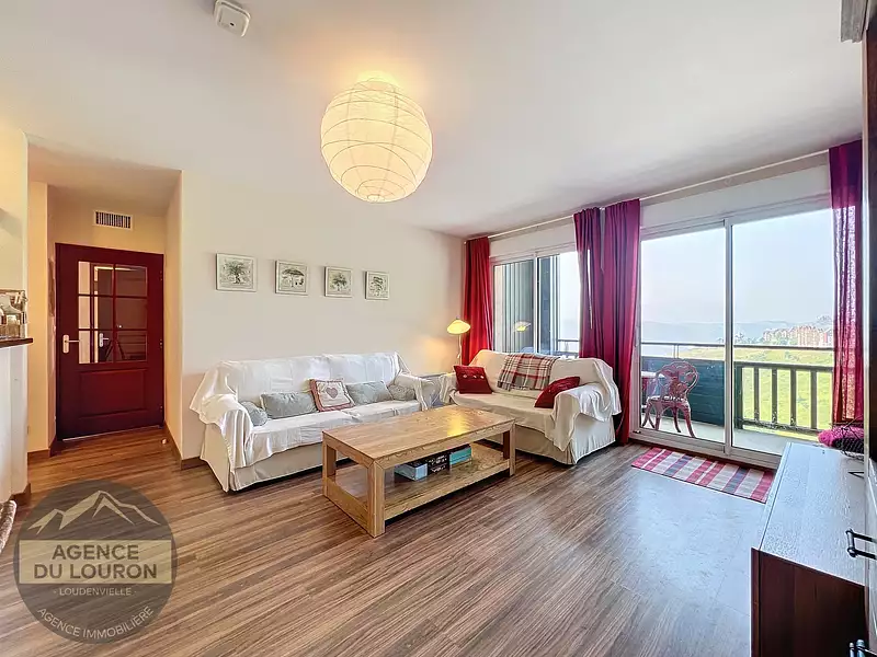 Idéalement situé au pied de piste de la Station de Peyragudes, cet appartement bénéficie de beaux volumes, et d'une jolie vue sur les montagnes !