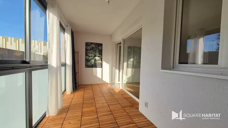 Square Habitat vous propose cet appartement de type III au sein d'une copropriété récente et ultra sécurisée. Il se compose d'une entrée avec rangements et porte blindée, une cuisine aménagée et équipée ouverte sur un spacieux séjour, deux chambres, une salle d'eau, des W.C. séparés et d'un espace buanderie. L'appartement dispose également d'une grande loggia, idéal pour en profiter d'un extérieur été comme hiver, donnant sur une allée piétonne peu fréquentée, exposée ouest. Volets roulants électriques dans toutes les pièces. Un extérieur avec du gazon est également accessible facilement au coeur de la copropriété. Place de stationnement disponible en sous-sol de la résidence (en location). La résidence est sous garantie décennale et aux dernières normes. Il n'y a plus qu'à poser vos meubles ! A proximité tous les commerces, d'un futur pôle médical et de tous les axes routiers. (4.09 % honoraires TTC à la charge de l'acquéreur.)