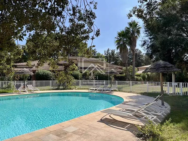 Emplacement privilégié pour cette mini-villa située dans une résidence avec piscine à proximité des plages de Saint Cyprien et Cala Rossa et 10 minutes du centre de Porto-Vecchio.