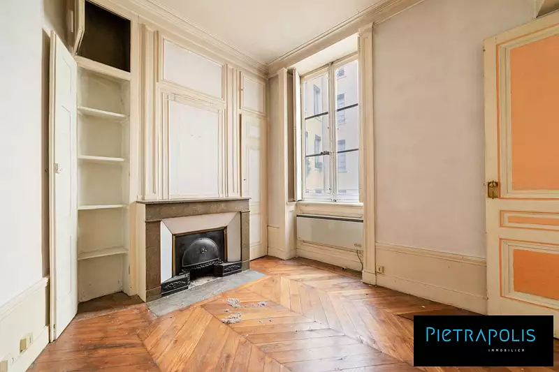 Rare à la vente, appartement T2 bis de 64,40 m2, entièrement à rénover, situé au 1er étage sur cour, rue Victor Hugo 69002.