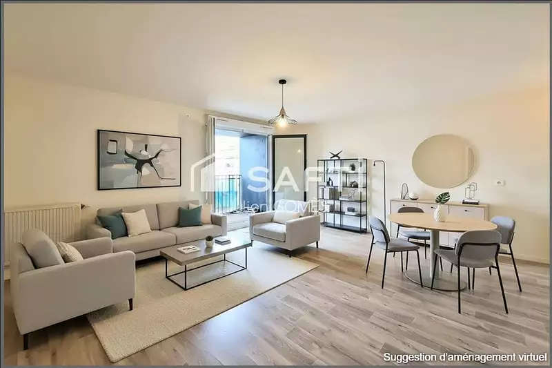 - Un séjour lumineux de 28 m² avec cuisine ouverte, donnant sur un balcon exposé sud