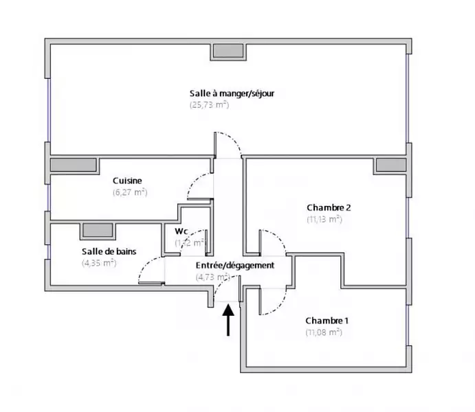 | 1 salle d'eau - 1 salle de bain | 1 wc |