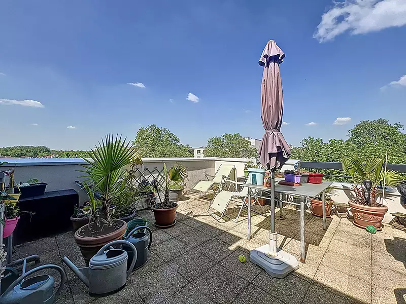 Les Agences DE VALLIERE vous proposent à proximité du centre-ville de Nanterre et de la gare RER A (à seulement 12 minutes à pied), dans une résidence calme et verdoyante, découvrez ce bel appartement de 64,57 m² situé au 4? étage avec ascenseur. Il se compose d'une entrée, d'un séjour donnant sur une loggia de 4,35 m², d'une cuisine aménagée, de WC séparés, d'un dégagement avec grands placards, de deux chambres et d'une salle de bains. L'ensemble est complété par une magnifique terrasse de 30 m² exposée sud-ouest, offrant un espace extérieur rare sur le secteur. Une cave et une place de parking intérieure en sous-sol complètent ce bien. La copropriété, comprenant 32 lots, est parfaitement entretenue et de nombreux travaux ont déjà été réalisés : ravalement avec isolation thermique par l'extérieur, changement des fenêtres et portes-fenêtres, chaudières et VMC neuves, mise aux normes de l'ascenseur et de la partie électrique, ainsi que la réfection des paliers du rez-de-chaussée et des six étages en cours d'achèvement. Les charges de copropriété s'élèvent à environ 2 600 euros par an, incluant l'eau chaude, l'eau froide, le chauffage et l'entretien des parties communes (ascenseur, espaces verts, porte de garage, ménage, etc.). (5.22 % honoraires TTC à la charge de l'acquéreur.) Copropriété de 169 lots - dont 32 lots habitation. Charges annuelles : 2769.44 euros.