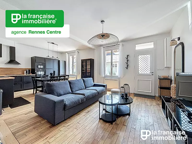 Agence La Française Immobilière Rennes Centre ! Situé au coeur du centre historique de Rennes, dans une impasse discrète et pleine de charme, à seulement quelques pas du centre-ville, des commerces de proximité, et à 250 mètres de la station de métro Sainte-Anne (Lignes A et B). A proximité immédiate des établissements scolaires : école Marcel Callo et collège de l'Échange à 300 mètres. Découvrez ce bien rare de type 3 de 64,99 m² en carrez et de 80.94 m² en surface utiles, à mi-chemin entre la maison de ville et l'appartement. Il se compose de : Une entrée, Une cuisine ouverte sur une agréable pièce de vie exposée Sud, Une salle d'eau avec WC. A l'étage : Un dégagement, Deux chambres lumineuses, Un second WC. En annexe : une cave de 8.08m² et un garage complètent ce bien. Informations sur les risques liés à ce bien disponibles sur : www.georisques.gouv.fr
