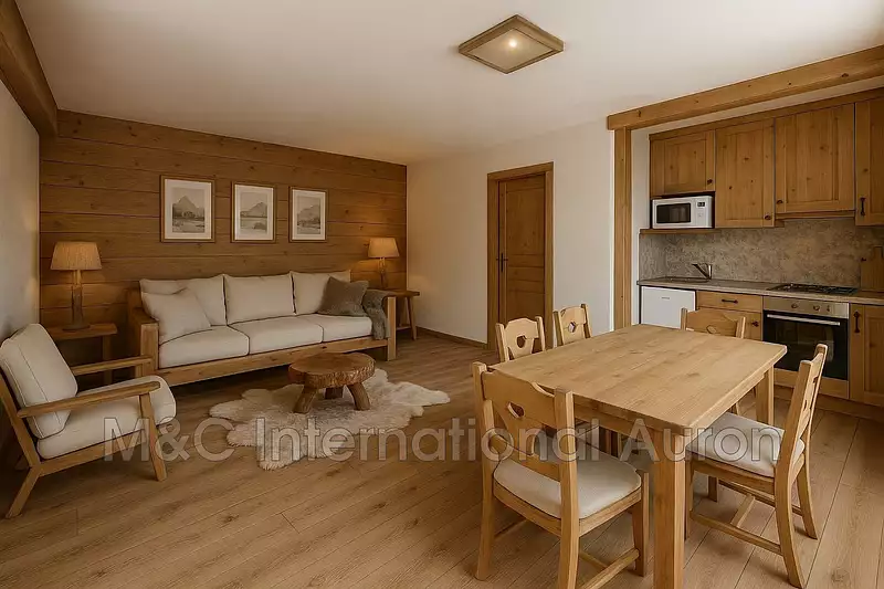 Très rare sur la station. 300 m du centre station. 3P avec de très beaux volumes comprenant un salon avec cuisine américaine ouvrant sur balcon en plein sud, deux chambres, une salle de bains, WC indépendants, un garage, une cave et un casier à skis. Nombreux rangements. L'appartement est baigné de soleil toute la journée. L'immeuble a été ravalé récemment, rambardes de balcon neuves, toit neuf, huisseries dans l'appartement neuves. Photos homestaging IA suggérées