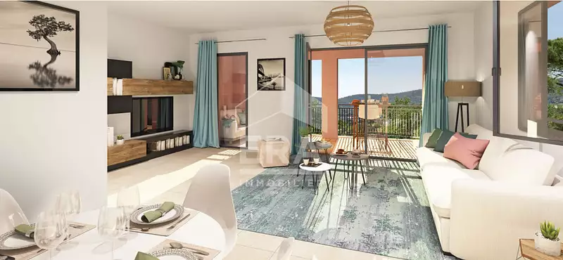 Lumineux séjour cuisine équipée ouvert sur terrasse