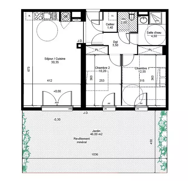 Appartement T3 en RDC de 64 m² avec son jardin privatif de 46 m². Belle situation proche de toutes les commodités à pied. Prestations de qualité : Grande baie vitrée, double vitrage, volets roulants éléctriques, peinture lisse dans toutes les pièces. 2quipement individuel pour la production eau chaude et chauffage. 2 places de parking en sous sol.
