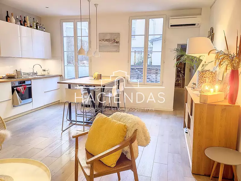 C'est au cœur du centre historique d'Aix-en-Provence, à quelques mètres de la Place des Prêcheurs dans un bel immeuble XIXème, que se trouve ce superbe T2 en parfait état de 48m2 (65m2 au sol) + mezzanine + très grande cave . Récemment rénové, et parfaitement au calme sur cour, l'appartement est doté d'un large séjour de 30m2 avec cuisine ouverte et équipée, d'une chambre de 14m2 et, d'un espace supplémentaire en mezzanine de 17m2 apte à en faire une chambre supplémentaire et/ou un lieu de rangement. En extérieur, vous pourrez profiter d'un bel et tranquille espace type 'patio' en bois de 12m2. Une grande cave d'environ 15m2 complète les prestations.