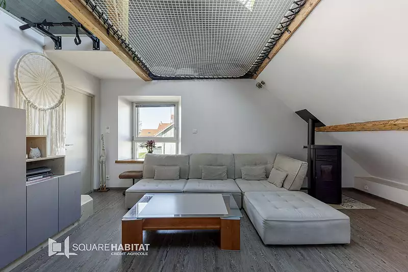 Square Habitat vous propose en exclusivité ce superbe appartement T2 Bis totalement rénové avec goût, au dernier étage d'une petite copropriété. Avec 65 m² au sol, soit 43 m² Carrez, il offre un espace chaleureux, fonctionnel et prêt à vivre. Situé en plein coeur de Charquemont, à proximité immédiate des commerces et services, l'appartement est composé d'une entrée desservant un débarras, d'une pièce de vie avec cuisine entièrement équipée ouverte sur un salon lumineux, d'une chambre avec un grand dressing intégré et fonctionnel, d'une salle d'eau moderne, WC séparés et d'un bureau. Pour compléter ce bien, une grande mezzanine sur la totalité de l'appartement est présente afin de vous offrir un espace supplémentaire vous offrant de nombreuses possibilités. Sans oublier, un coin extérieur à aménager, une cave, une place de parking privative et surtout un garage individuel ! Caractéristiques et atouts principaux : - Appartement entièrement rénové récemment - Classe énergétique C : confort, économies et tranquillité pour de la résidence principale ou un investissement locatif - Faibles charges de copropriété - Garage individuel fermé - Place de parking privative - Cave - Coin extérieur à aménager - Petite copropriété calme Un véritable coup de coeur, idéal pour un premier achat ou un investissement serein. A visiter sans tarder !